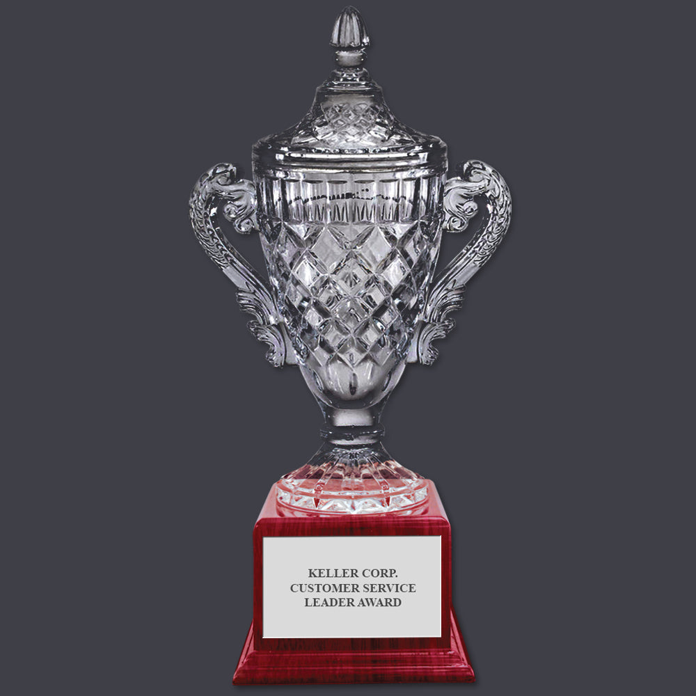 15-1/2" Custom Engraved Optical Crystal Award With Rosewood Base15-1/2" Custom Engraved Optical Crystal Award With Rosewood Base