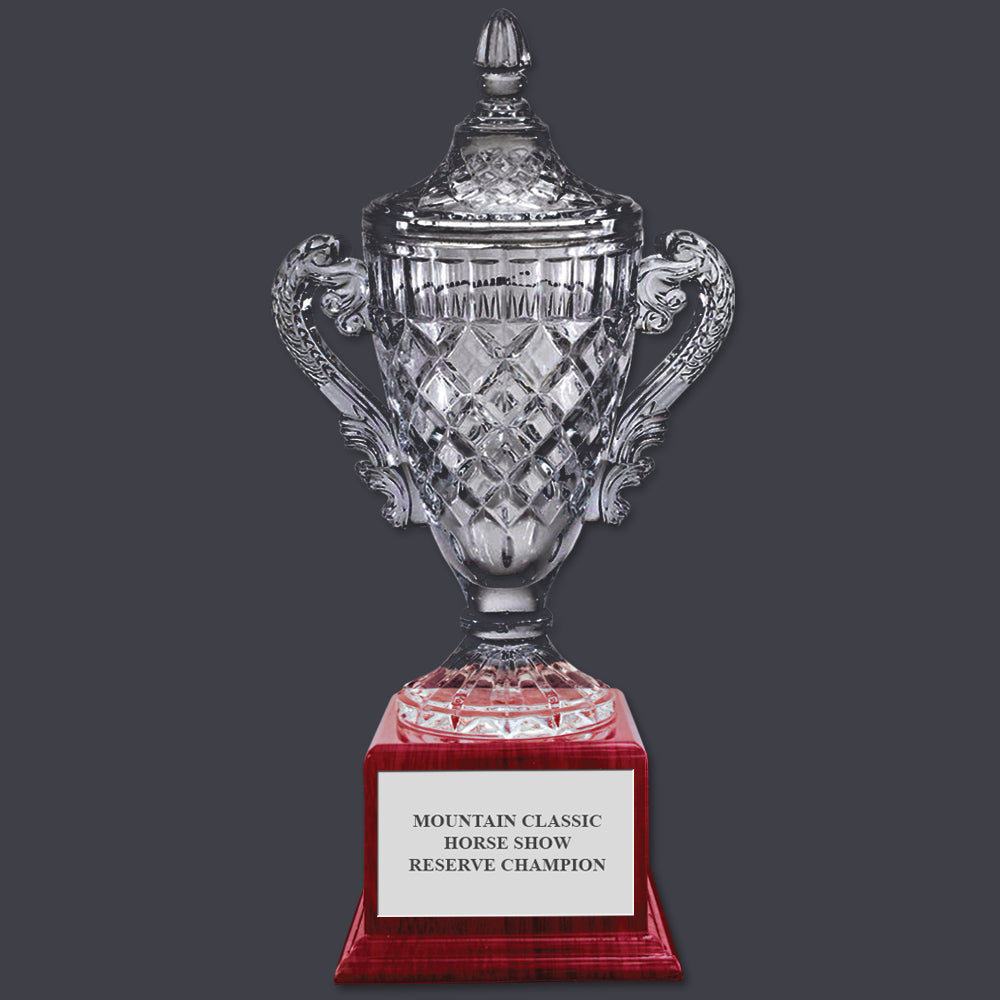 C2012 15-1/2" Custom Engraved Optical Crystal Award With Rosewood Base