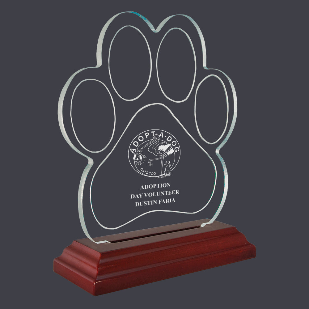- 5-1/2" Engraved Sports Small Paw Print Acrylic With Rosewood Base