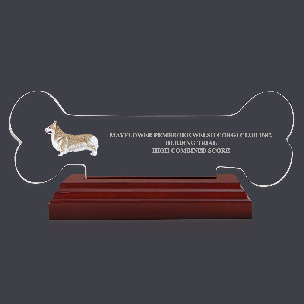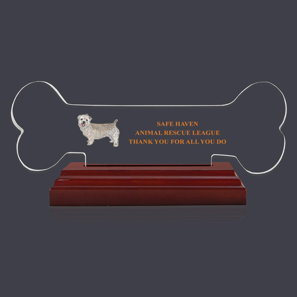 - 8-1/4" x 3-5/8" Full Color Sports Dog Bone Acrylic With Rosewood Base