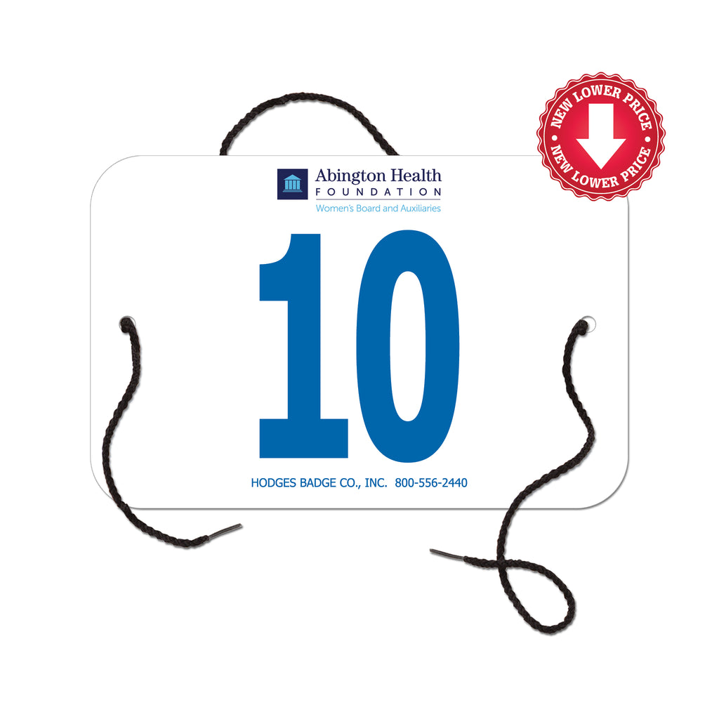 - 8-1/16" x 5-5/16" Custom Indurotec™ Full Color Large Rectangular Sports Participant Number With String