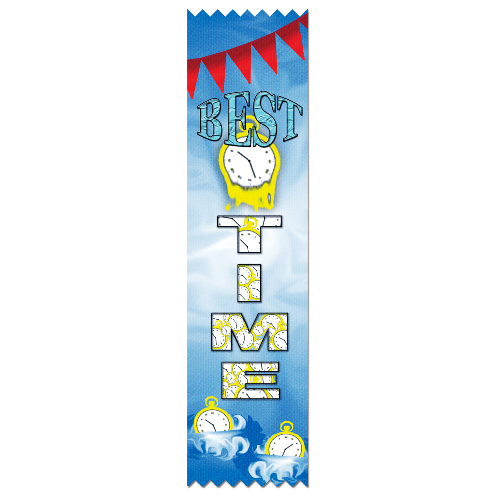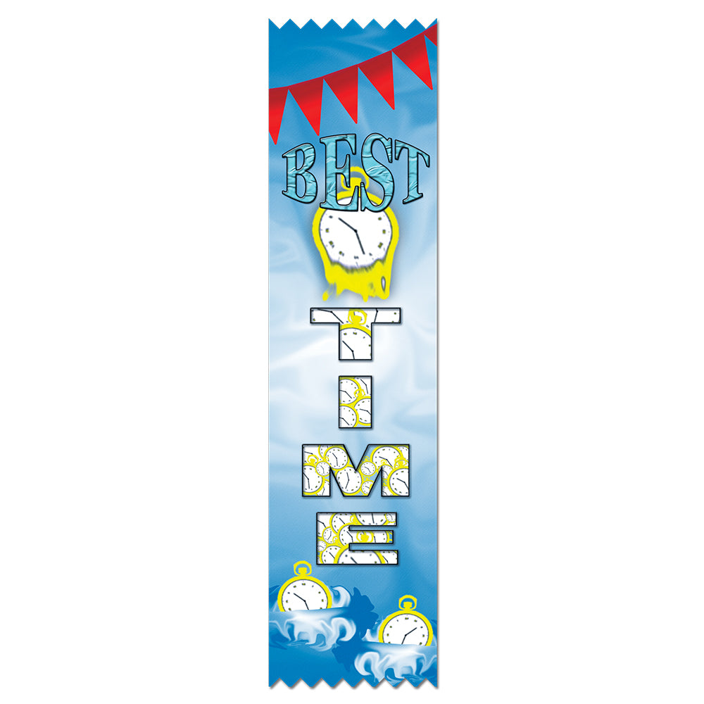 - 2" x 8" Stock Multicolor Pinked Top "Best Time" Award Ribbon