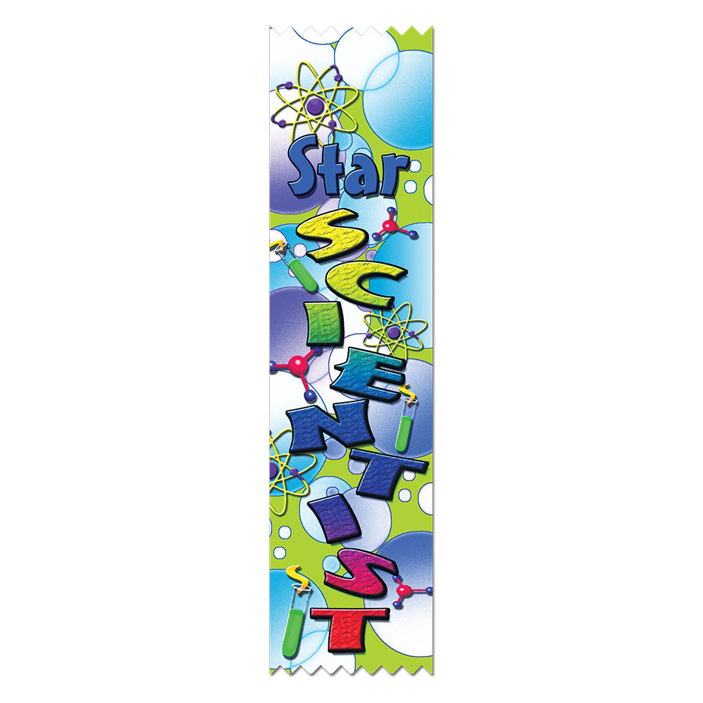 • 2" x 8" Stock Multicolor Pinked Top "Star Scientist" Award Ribbon