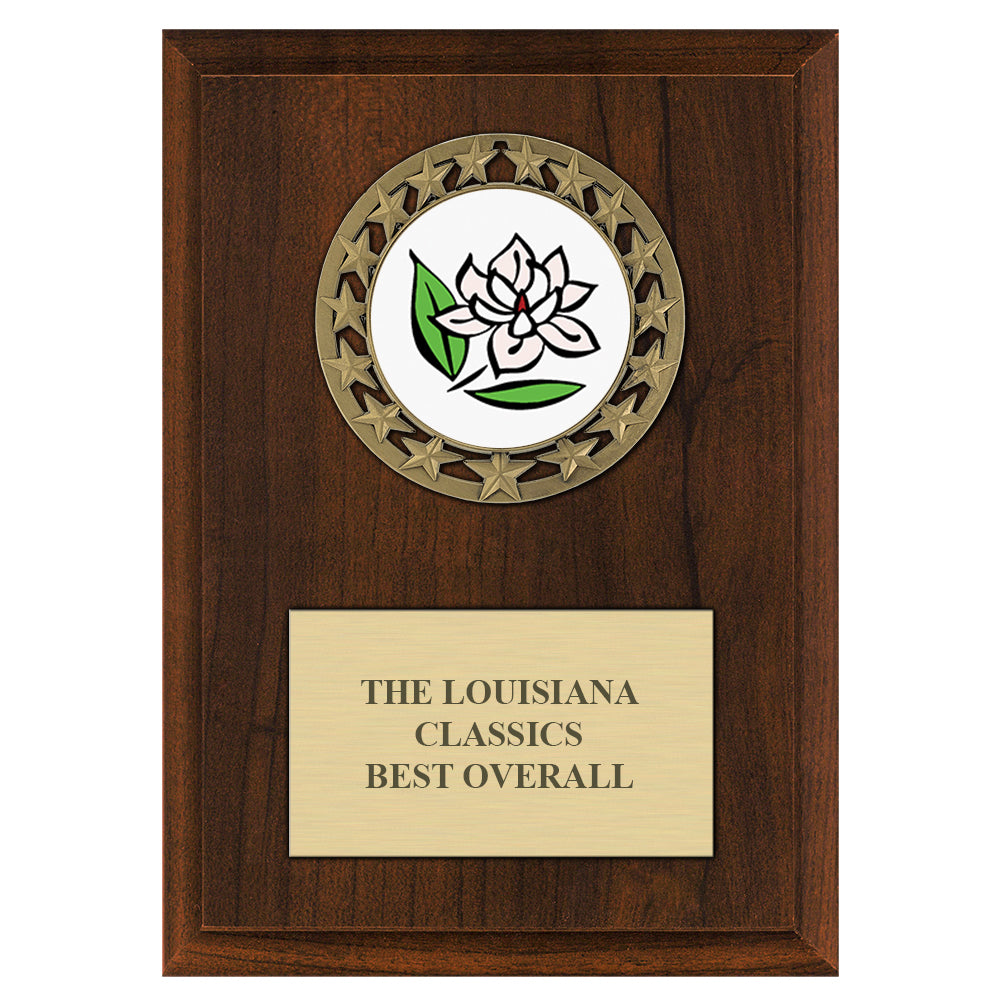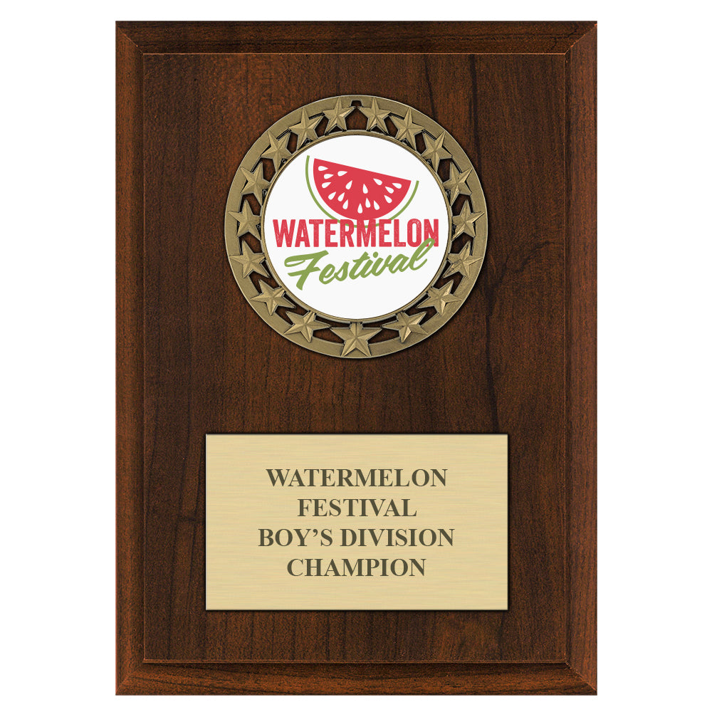 5" x 7" Custom RS14 Medal Cherry Plaque With Engraved Plate