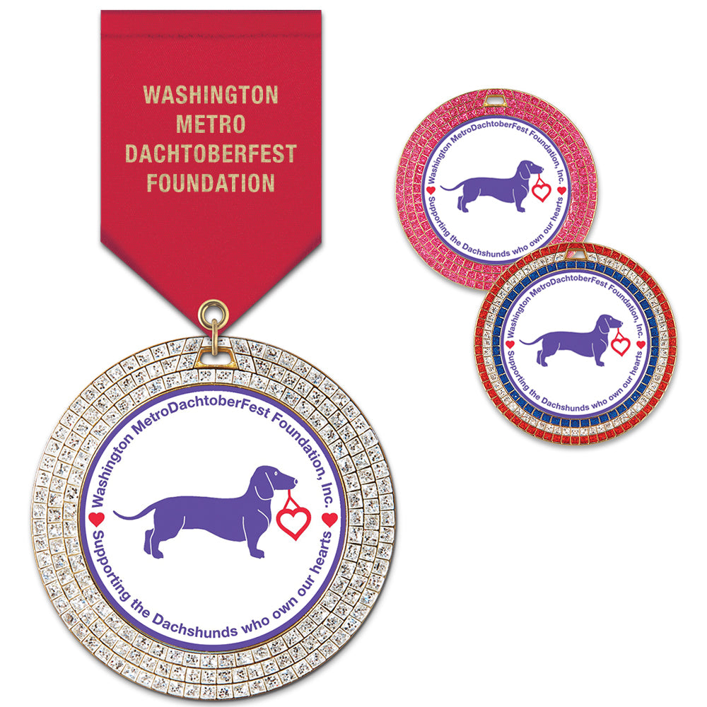 • Choose from one of our stock designs or your custom logo and text printed in medal center
