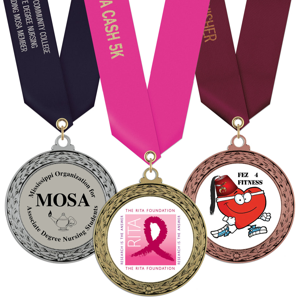 - Choose from one of our stock designs or your custom logo and text printed in medal center