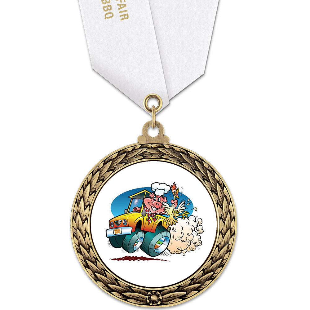 2-5/8" Custom GFL Award Medal With Grosgrain Neck Ribbon