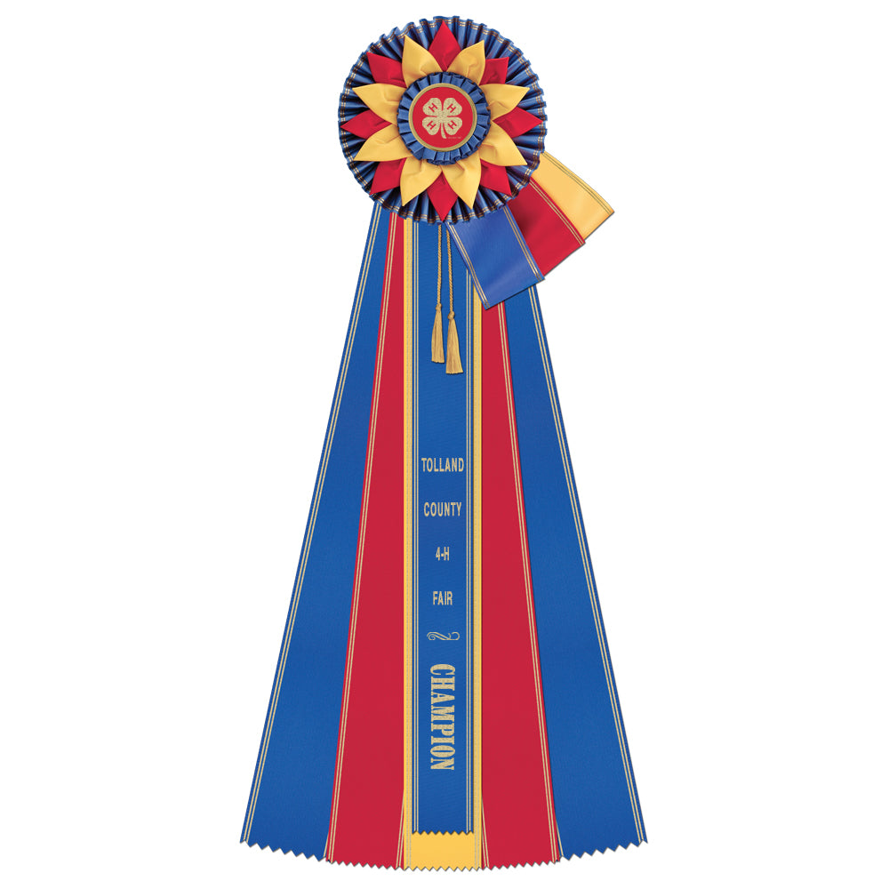 - Matching colored side loops staggered under rosette top and golden tassels attached