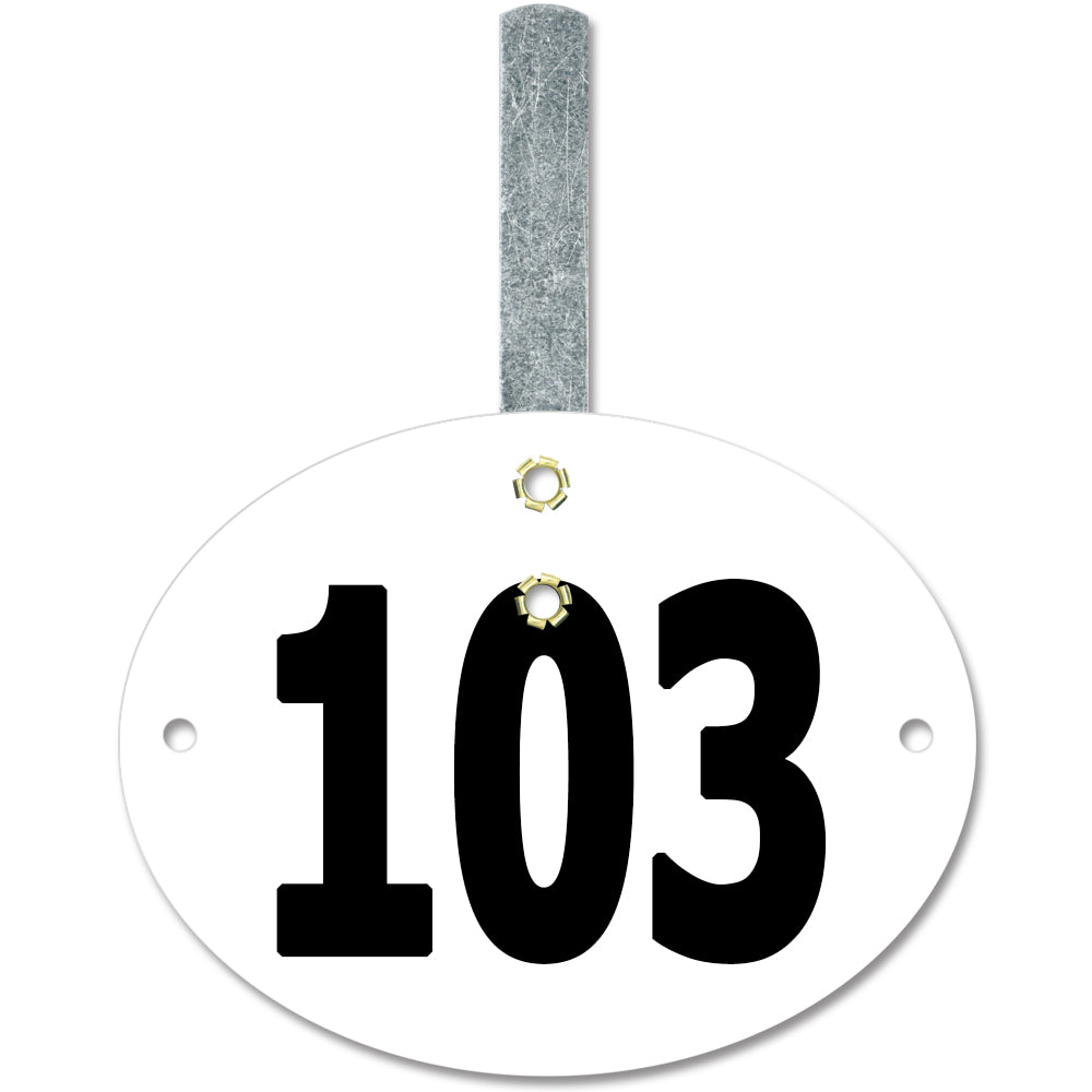 - 4-3/8" x 3-3/8" Small Oval Dressage Number With Metal Hook