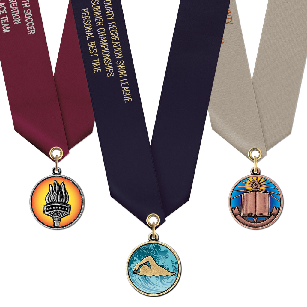 1-1/8" CXC Color Fill Award Medal With Satin Drape Ribbon