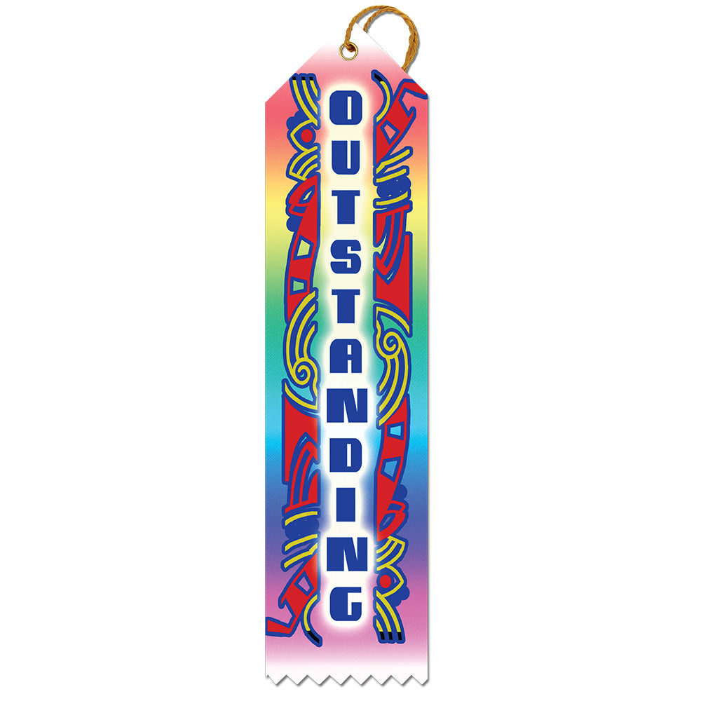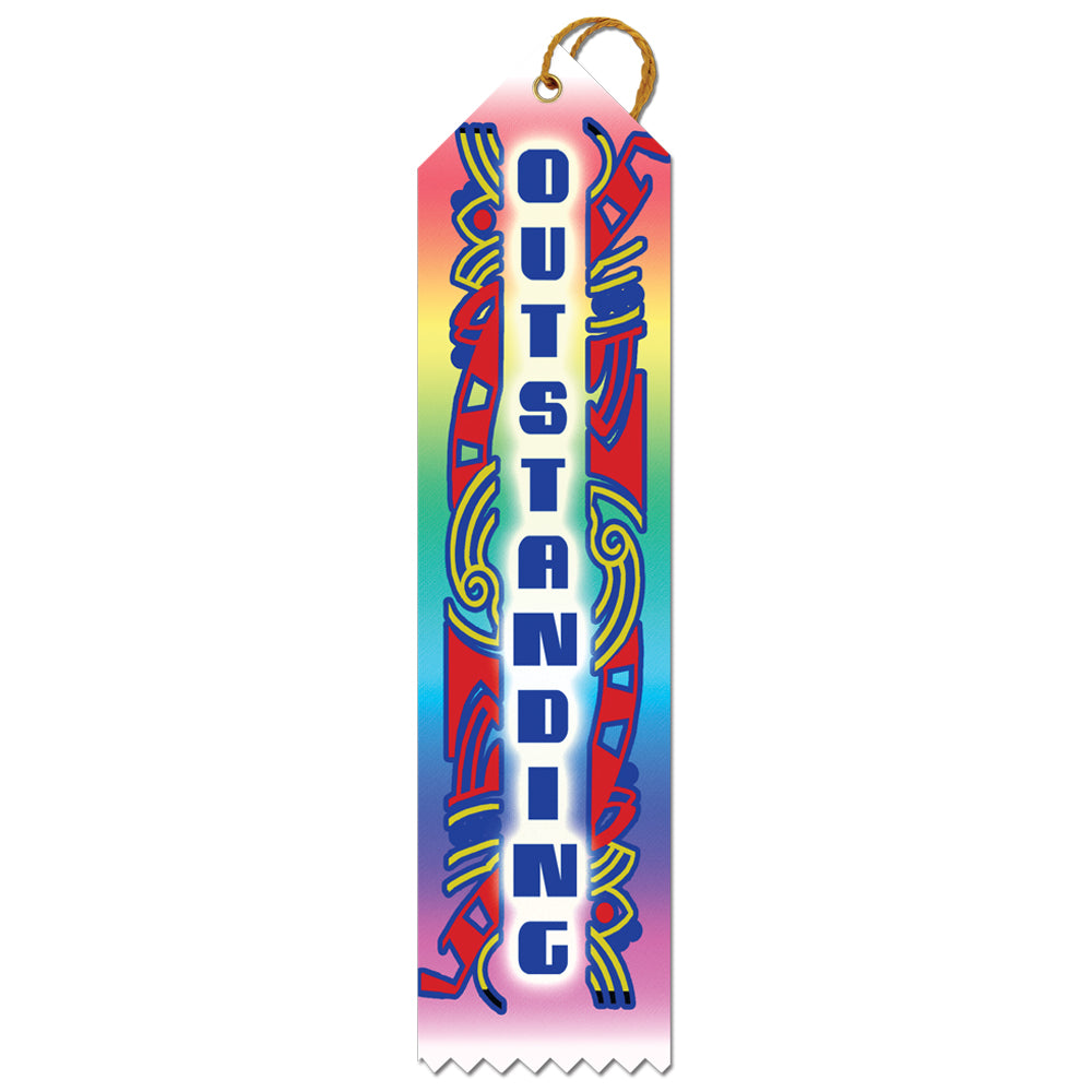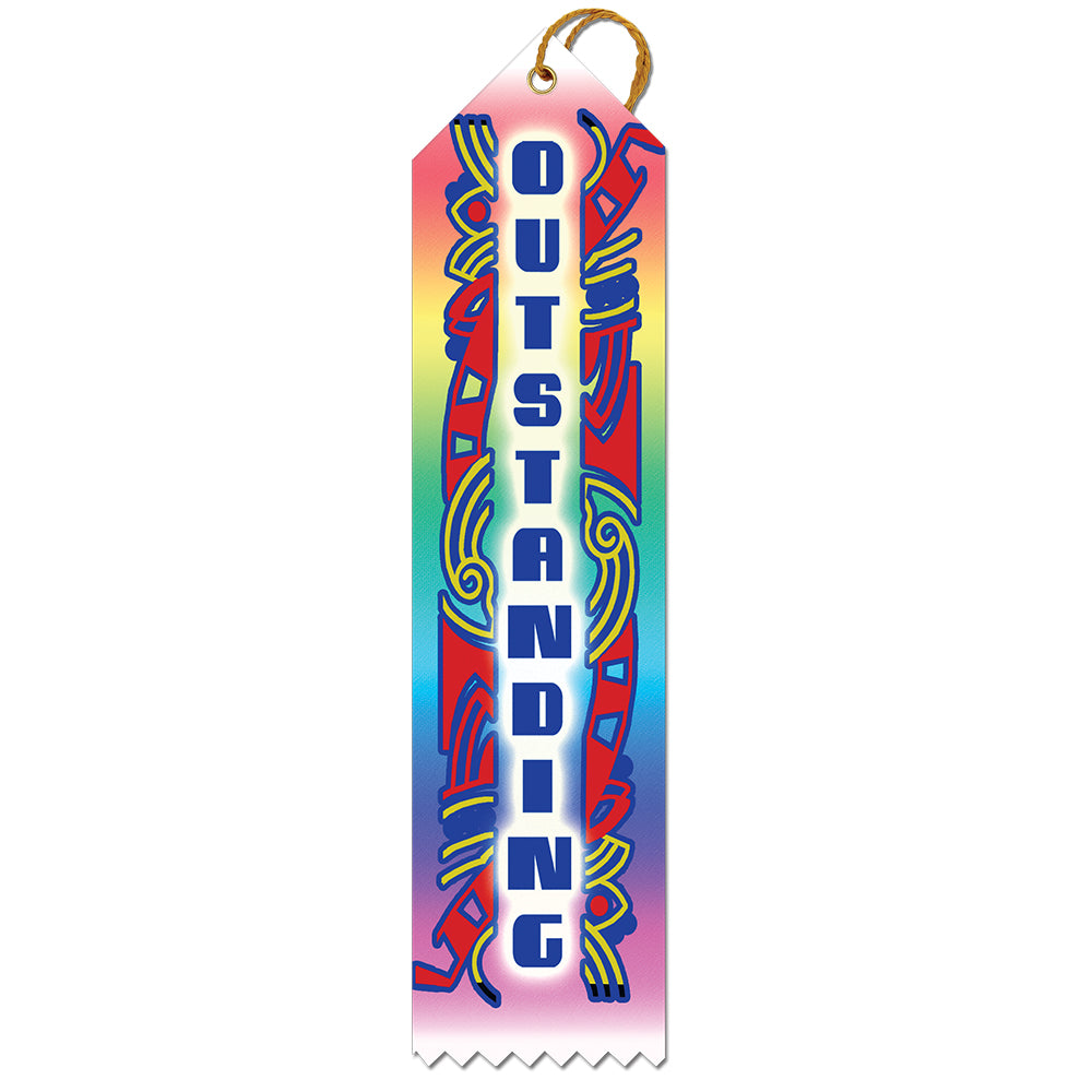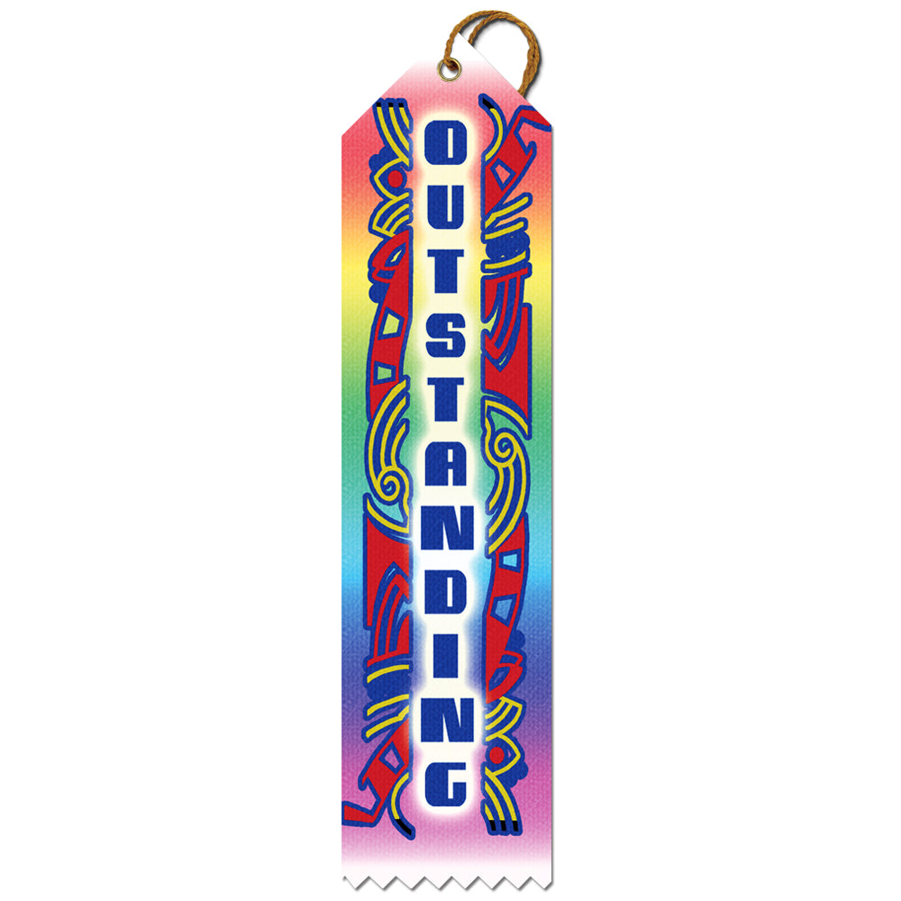 • 2" x 8" Stock Multicolor Point Top "Outstanding" Award Ribbon