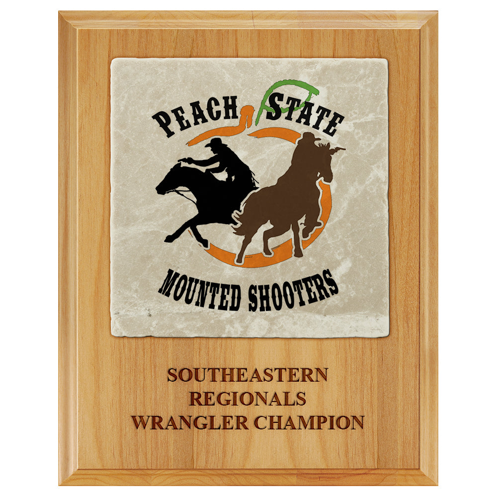 6" x 8" Full Color Award Plaque - Red Alder w/ Tumbled Stone Tile