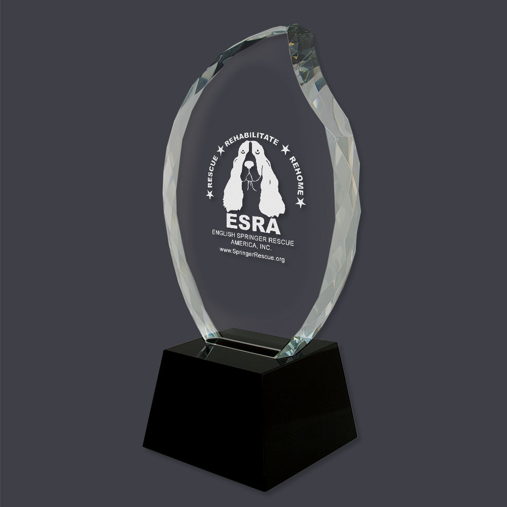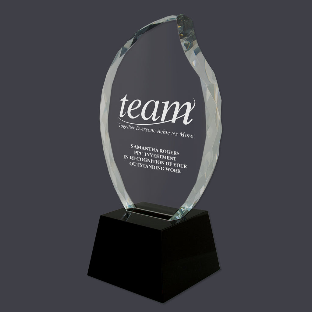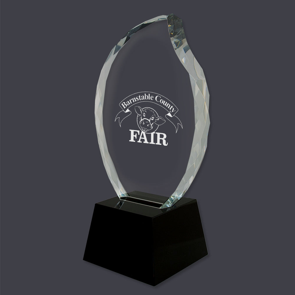 - 9" Custom Engraved Optical Crystal Faceted Flame Trophy