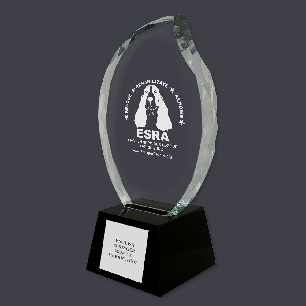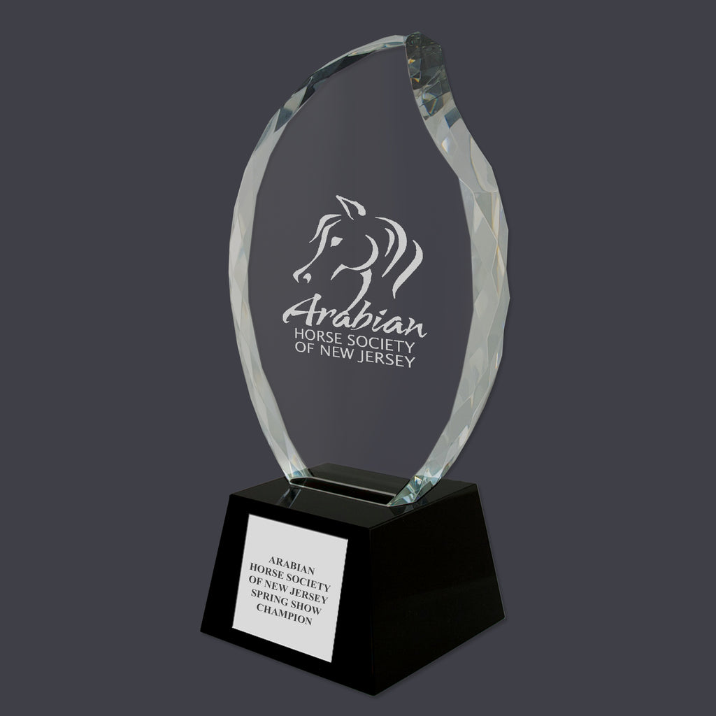 Optical Crystal Faceted Flame Trophy w/ Black Optical Crystal Base