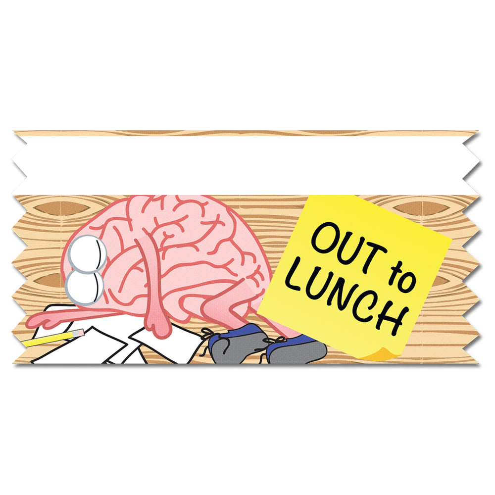 • 4" x 2" Stock Multicolor Horizontal Tape Top "Out To Lunch" Ice-Breaker Award Ribbon